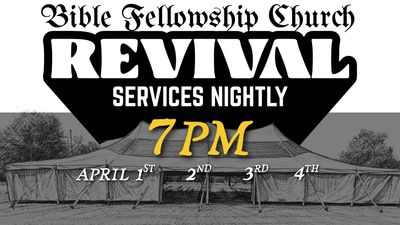 From April 1–4 at 7:00 PM each night, Bible Fellowship Church will host a community revival focused on worship, prayer, and the powerful preaching of God’s Word. Our prayer is simple: that hearts would be awakened, faith would be strengthened, and people would encounter Jesus in a fresh way.